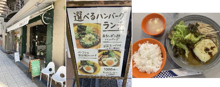 ランチ平均価格帯:1100円〜1540円、おすすめ:アジフライと和風ハンバーグ定食1200円