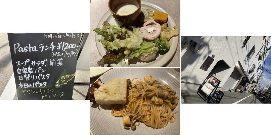 ランチ平均価格帯:790円、おすすめ:パスタセットでパスタもサラダも大盛790円(写真)[2024/09/18]