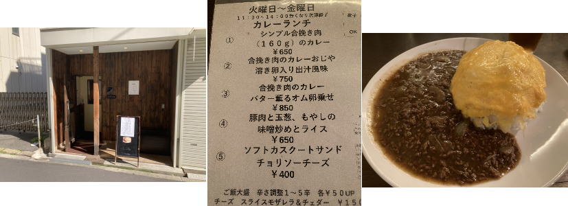 高いのであまり行かないが創作チックなカレーが出てくる。コーグルトと珈琲が付く。[2024/09/09]