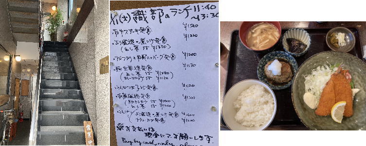 ランチ平均価格帯:300円〜700円、おすすめ:日替おかずセット+ごはん+味噌汁650円(写真)