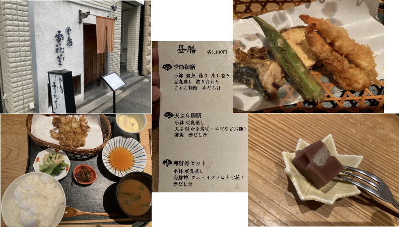 最後にようかんも出てきて1100円は満足。でも遅いのでトータルは標準店点。