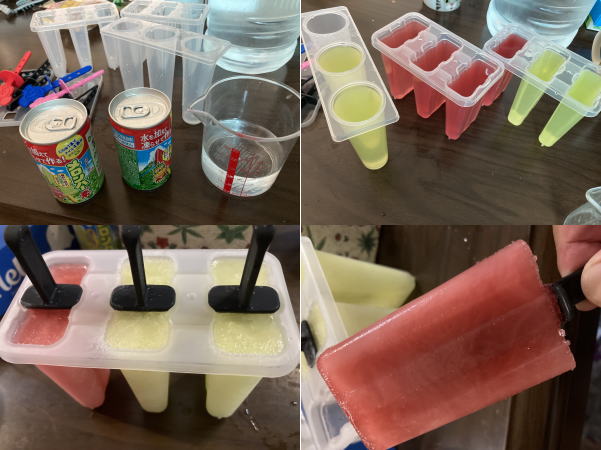 購入し、準備OK。原液を水で薄めて容器に流し込み、凍らせればできあがり。